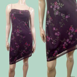 Vintage 90s Y2K Byer Too! Slip Dress Size M Floral Mesh Asymmetric Hem Burgundy