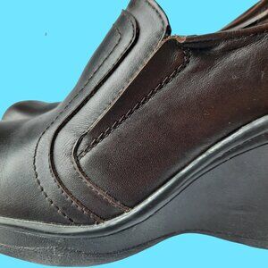 * Vintage 90's-Y2K brown leather chunky wedge loafers by River Land