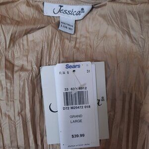 Vintage 90s Y2K Crinkle Blouse Deadstock With Tag Size L Beige Gold Wide Collar