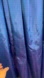 Has a zipper back, straps that have adjustable buttons for custom length, rose details along the neckline, crinoline undershirt, is full length, has corset like boning structure in the top. Material is blue, but has an iridescent purple shift to it.