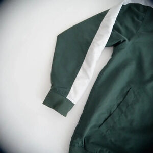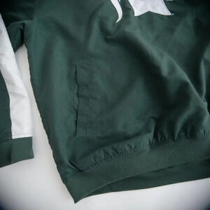 Step back in time with the Vintage 90's Y2K Knights Apparel Green & White Michigan Spartans V-neck Pullover Windbreaker, available in size Large. This iconic windbreaker seamlessly blends comfort with a touch of collegiate charm, capturing the essence of classic vintage apparel from the 90s and Y2K era.