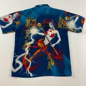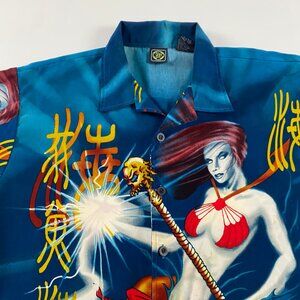 Vintage 90s Y2K Mermaid Anime All Over Print Shirt Mens Large Button Down Up R2