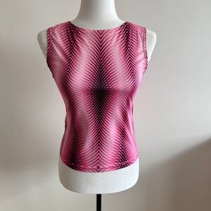 Vintage 90s Y2K rave style tank top with a psychedelic pattern. Marked size Medium, fits like a Small. Minor flaws noted in photos.