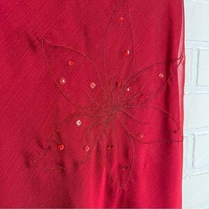 Vintage 90s Y2K Red Sheer Overlay Sequin Cap Sleeve Midi Dress 1