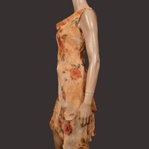 Vintage 90s Y2K Sleeveless Dress Earthy Floral Rose Print Fairy Grunge Size S