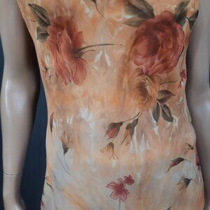 * 90's Y2K terra cotta beige sleeveless rose print midi dress