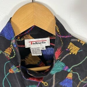 Vintage 90s Y2K Talbots 100% Silk Blouse Tassel Print Womens Size 12