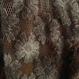 There is an underskirt that is warm brown in color but only reaches somewhere above the knees (approximately 18" from the waist to the hem of the underskirt). The rest is somewhat sheer but not too sheer as the fabric is quite detailed and rich in design. The underskirt provides a nice contrast peeking underneath