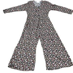 Vintage 90s dark florals high waist wide leg jumpsuit overalls