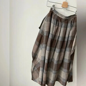 Vintage 90’s high waist wool plaid ruffle midi skirt