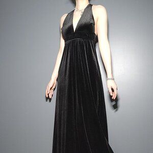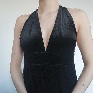 Vintage 90s low cut black velvet babydoll halter maxi dress for the Holidays
