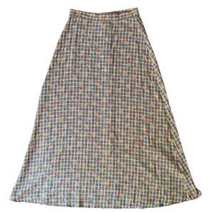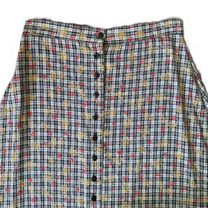 Vintage 90s maxi demure ditzy floral print high waist A line button front skirt