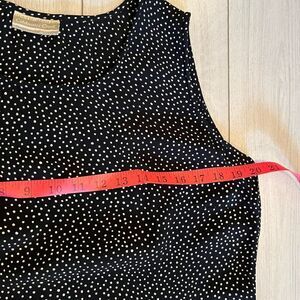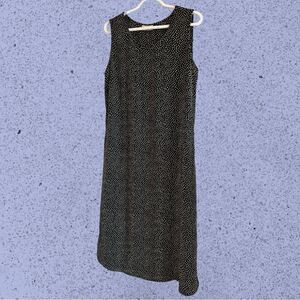 Classic vintage midi dress with irregular polka dot print. Shift style dress, no size tag, or fabric tag but feels like rayon and fits a medium/large. Black and white. Perfect for summer! Excellent condition.