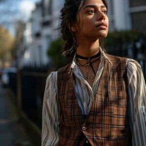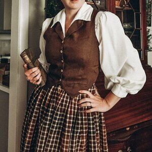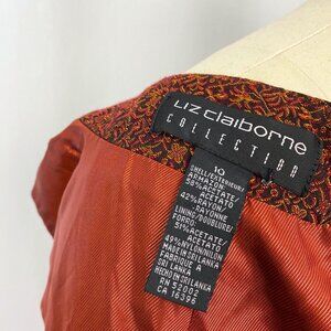 Waistcoats fix everything! This stunning vintage vest from Liz Claiborne features a flattering shape, button-up styling and soft, high-quality fabric (shell: 58% acetate, 42% rayon; lining 51% acetate, 49% nylon). The gothic brocade features red and gold vines against a deep blackened burgundy background. Perfect for your 90s, dark academic, vampiric and gothic looks.