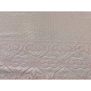 Vintage 90s pink curtain, contemporary ladder work lace, floral scalloped edge