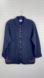 dark blue with pink and burgundy embroidered flowers on placket, back, and front hems