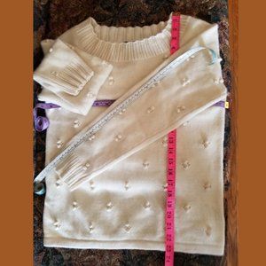 Lovely, attractive sweater, jumper with bobble pattern front and back, vintage 90s. Crew neck, made by Jones of New York Signature clothing line. Dressy, suitable for the office, touch of cottagecore vibes. Size women's M. Width pit to pit, inches 19, length inches 23.25, sleeve inches 21, colour cream.