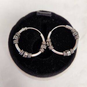 Vintage 90s Authentic Traditional Balinese Handcrafted Silver Hoop Earrings with Classic Tribal rope Pattern.