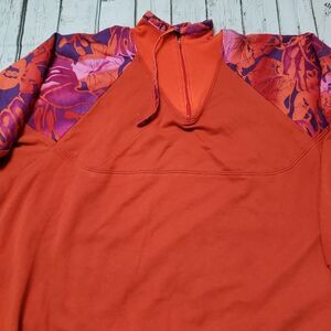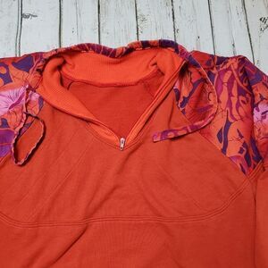This is definitely an iconic '90s sweatshirt! Quarter zip. There is a little wear on it as pictured. It has no size on it, it fits oversized, I would say Large though. I fit size medium/large and it's baggy on me. I am 5'6 for reference. Measurements are also in the photo.