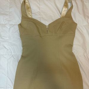 Vintage 90s women's body con dress tan size small light academia night out. No brand tag 90s y2k looks like a small. would look great with tan coat.