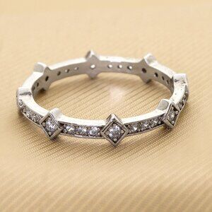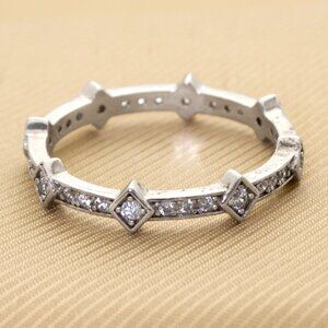 Vintage 925 Sterling Silver & CZ Stones Accent Geometric Band, Size 6.5