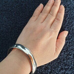 This vintage sterling silver bracelet is a must-have for anyone who loves elegant, versatile jewelry. Wear it solo for a sleek look or stack it with other pieces for a bold statement. It is in very good vintage condition with a light dent along the outer portion of the bracelet. Please check the photos and videos carefully before making a purchase.