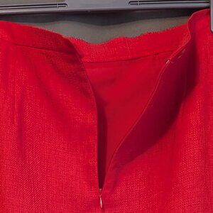 Vibrant red, linen weave. Vintage 90s, A & K Designs, long but not ankle length, skirt. Size 10. Perfect condition. Beautiful piece.