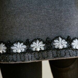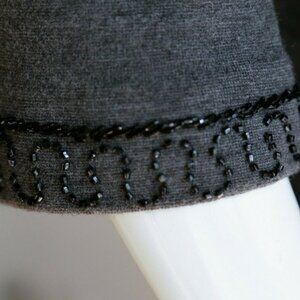 Thick, knit fabric with gorgeous, black and white floral beaded embroidery. 3/4, bell sleeves.