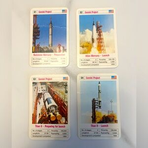 Vintage ACE Trump Card Game featuring colorful images of historical launches. Perfect for collectors.