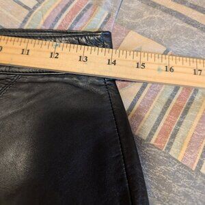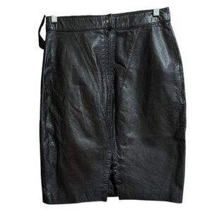 Vintage ADA Leather Skirt Black Button/zip Skirt with Back Slit High Waist
