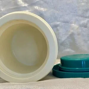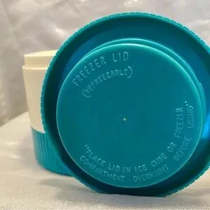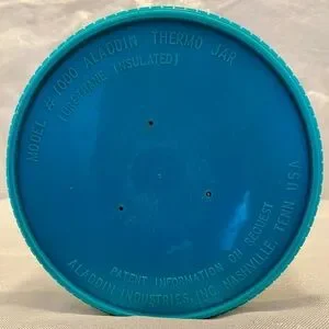 ALADDIN THERMOS Vintage , 1970’s small thermos with teal and white design. Very clean, no smell! Pre-filled freezer lid to keep your food cool. DO NOT put any of the components in the microwave!