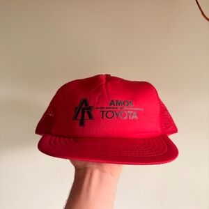 Vintage AMOS TOYOTA CAR DEALERSHIP trucker hat red mesh snapback