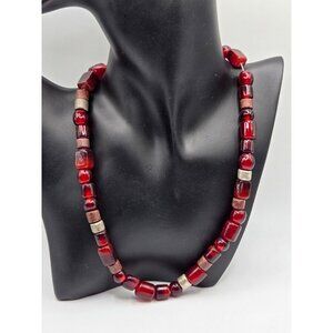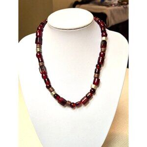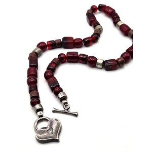 Very beautiful Garnet Silver and Glass beaded necklace with a heart clasp that can be worn in the front or back. 18" long. Signed