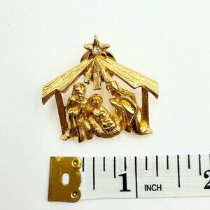 Vintage AVON Gold Tone nativity tack pin brooch with rhinestone star