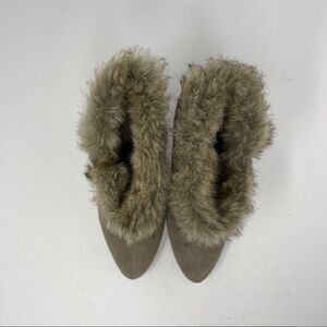 Vintage AVON Pull On Booties Taupe Suede Faux-Fur Heeled Women’s Size 7
