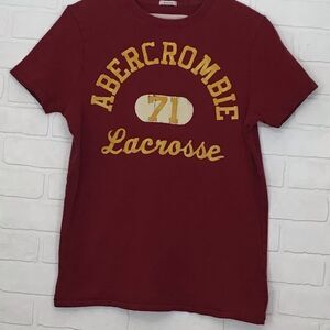 Item keywords: vintage abercrombie, abercrombie fitch tee, abercrombie lacrosse shirt, 90s graphic tee, retro abercrombie t-shirt, abercrombie crew neck, vintage streetwear tee, red graphic shirt, worn-in vintage shirt, casual layering tee, nostalgic 90s style, retro college style, unisex vintage top, casual streetwear look, weekend style shirt, festival vintage tee