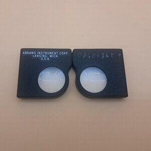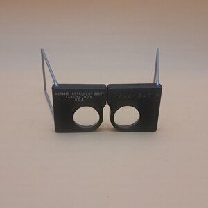 An old Abrams Instruments Corp. stereoscope made in the US. From its appearance it matches those built in the 1940s to mid 1950s but I cannot be sure; they were often used to look at overlapping pictures that were taken in the air. Closed they are 4 5/8" wide, 2 1/8" tall and 3/8" deep. For shipping the 2 metal side frames will be detached. There is a serial or inventory number that has been scratched onto its left side.