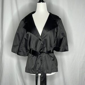 Catch everyone's attention with this unique and stylish Abria Premium Black Satin Belted Blazer.