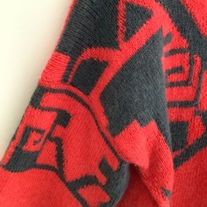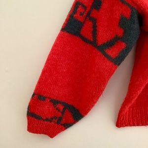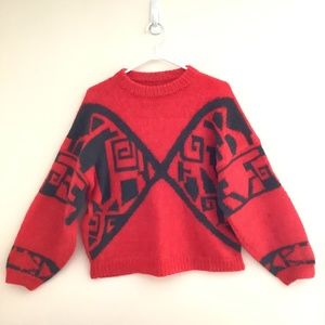 This vintage knit is GORGEOUS. It is giving 80s and 90s vibes with its incredible colour scheme, intarsia graphics, drop sleeves and croppish, boxy fit. It hangs beautifully, and is oh so cuddly. I can’t say enough about this vintage find. The pictures don’t do it justice. Vibrant. In perfect shape. Just fantastic.