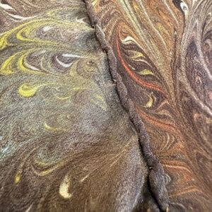 This luxurious vintage silk scarf features a swirling abstract marble design in rich earthy tones with hand-rolled edges — a detail found only in quality scarves. Lightweight and generously sized at 36", it can be worn multiple ways: around the neck, over the shoulders, tied to a bag, or styled as a chic top. A timeless, versatile piece that elevates any wardrobe.