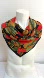 Vintage Abstract Silk Scarf – Red/Green/Gold Geometric Pattern - Hand Rolled
