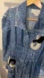 Vintage Acid Wash Denim Dress with Puffed Sleeves, Peplum Skirt, Appliqués