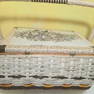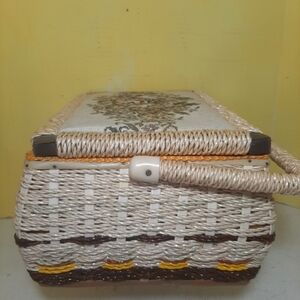 Vintage Acrylic Weave with Tapestry Sewing Basket.
