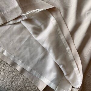 A timeless vintage find from Addenda by Renown, likely from the late 1970s to early 1980s. This softly structured cream skirt features elegant side pleats accented by decorative buttons & full interior lining. The fabric has a subtle textured sheen & is made from a luxe-feeling polyester-acetate blend with a smooth polyester lining. Side zipper with interior waist hook closure.