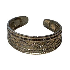 This vintage toe ring features a beautiful intricate pattern in silver and gold tone, offering a touch of elegance to your summer footwear. Its adjustable design ensures a comfortable fit for various sizes, making it a versatile addition to your jewelry collection.