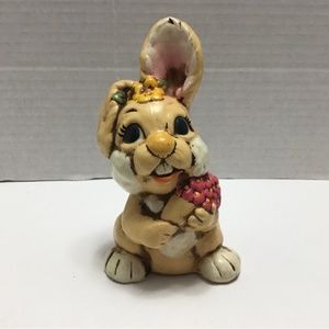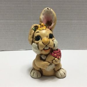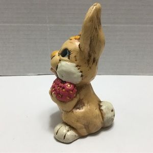 Vintage Adorable sweet Face Ceramic Bunny With Pink Flowers Signed Korea