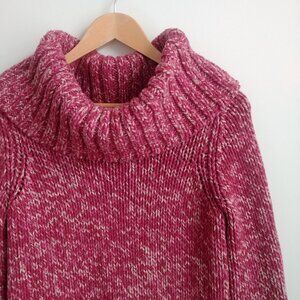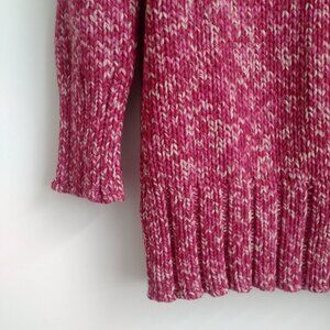 Very good used condition, thick knit, wool blend. Beautiful dark pink shade with flecks throughout. Runs small/fitted for a Large. Please see photos for measurements and tags.