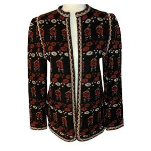 Vintage Adrienne Vittadini Floral Knit Cardigan Metallic Thread Black Red Sz M