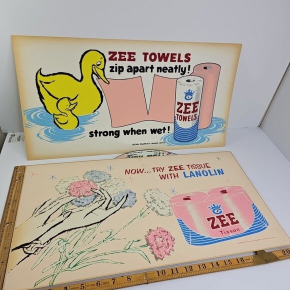 Vintage Advertising Signs 1950s - Zee Tissue Crown Zellerbach Canada Limited