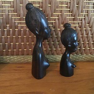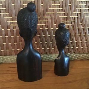 Vintage African Ebony Wood Hand Carved Female Figures Sculptures ( 2 )